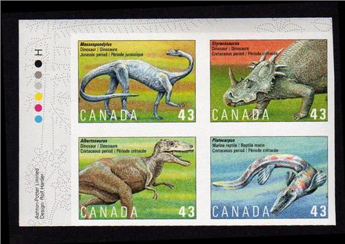 #1495-98var XF-NH UL IMPERF BLOCK 4 *DINOSAURS*
