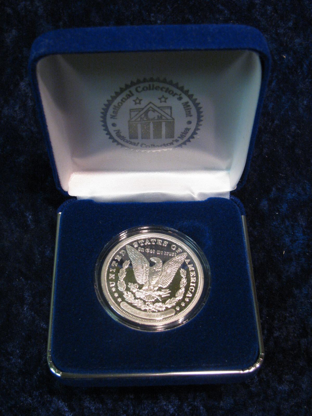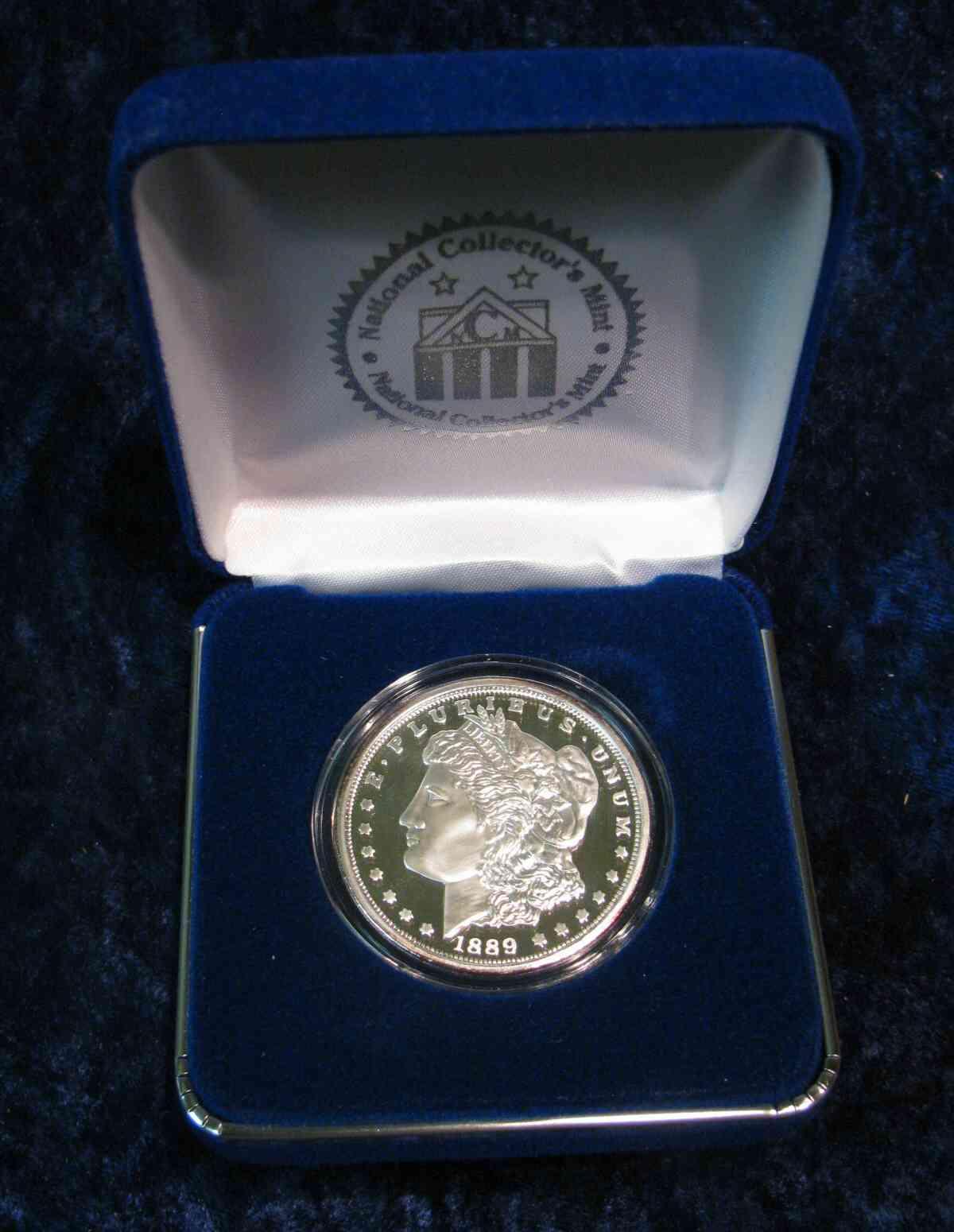 1496. 1889 CC Proof Morgan Silver Dollar Copy In Display Case, National Collectors Mint #AK0941
