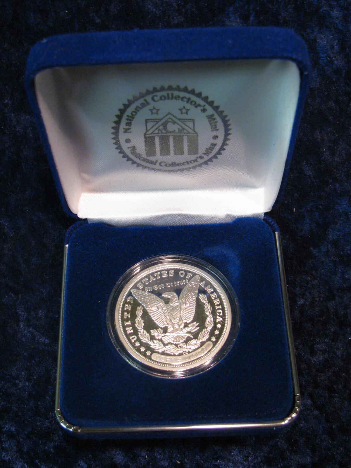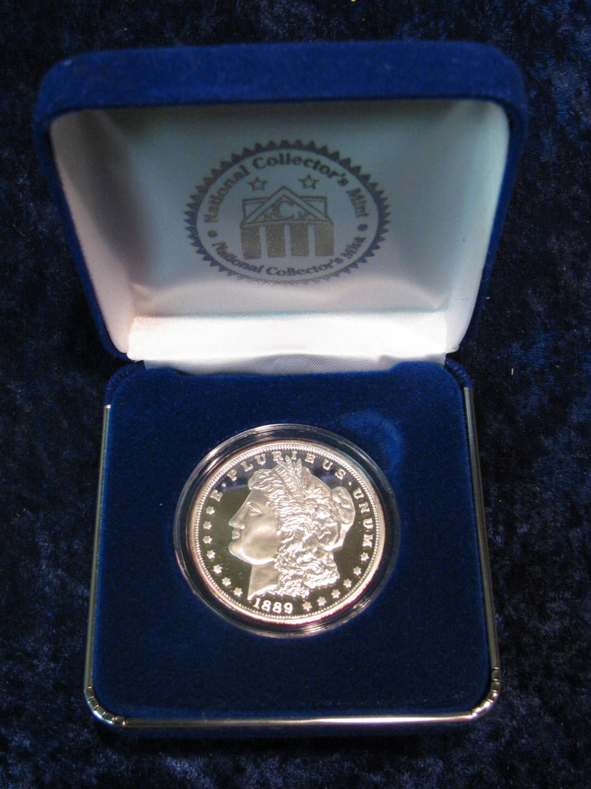 1498. 1889 CC Proof Morgan Silver Dollar Copy In Display Case, National Collectors Mint #AK0839