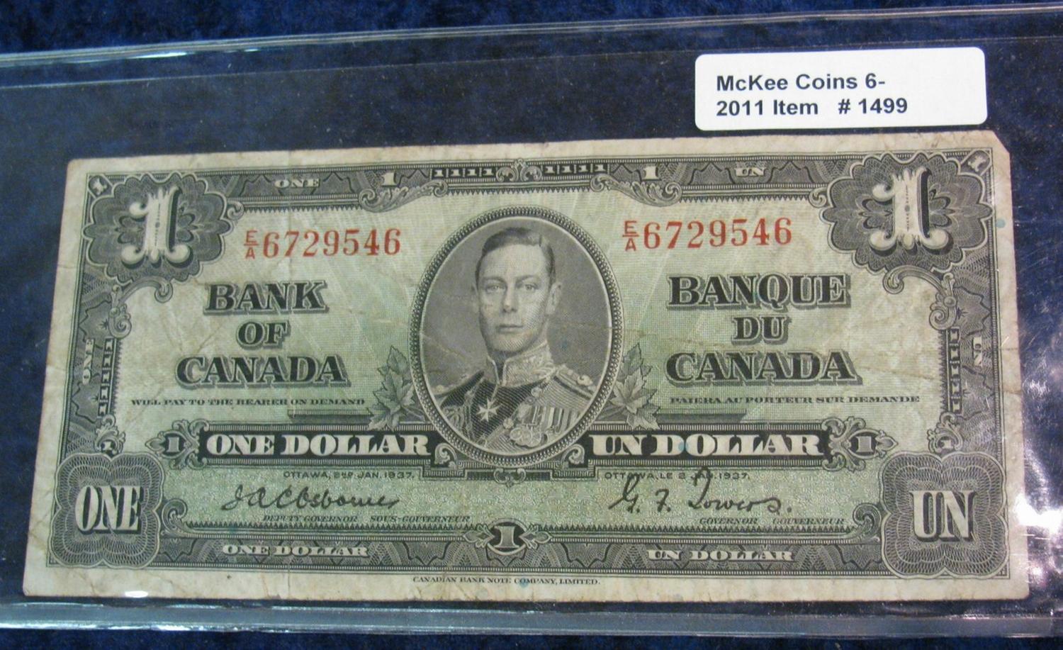 1499. Series 1937 Bank of Canada $1.00 Note. F.