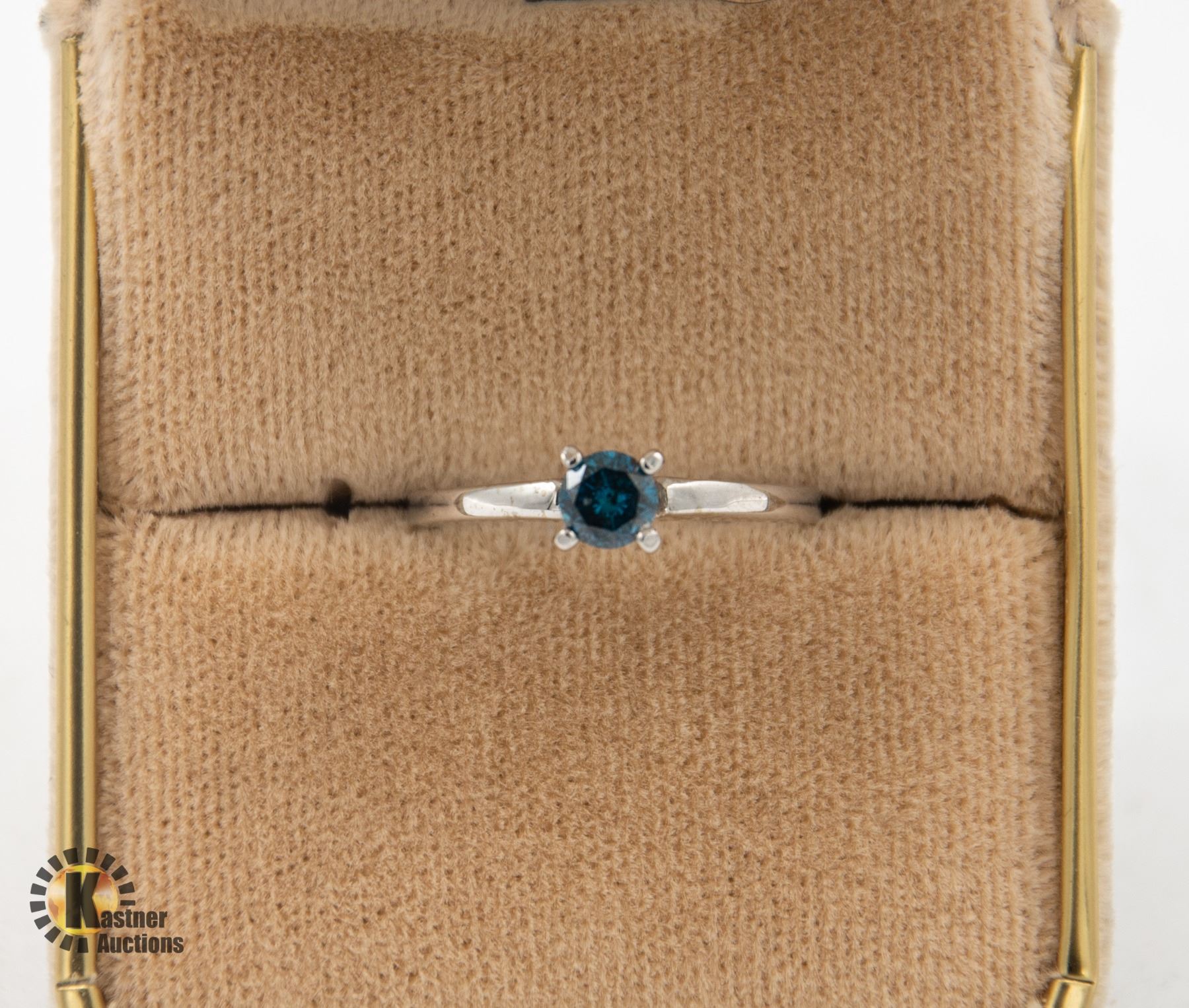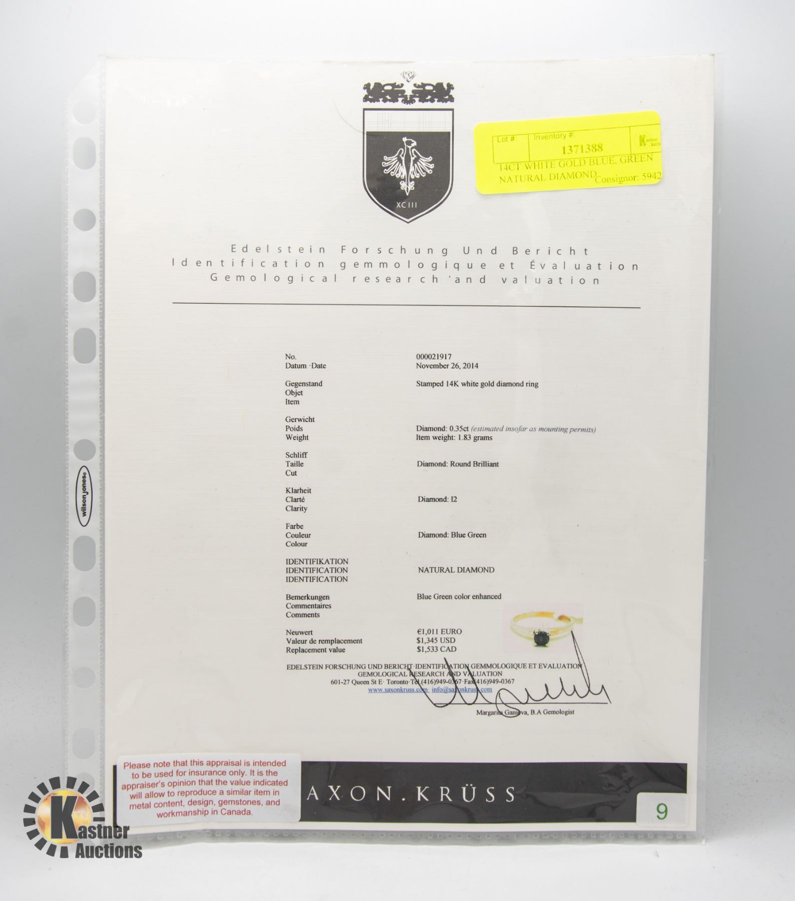 14CT WHITE GOLD BLUE, GREEN NATURAL DIAMOND