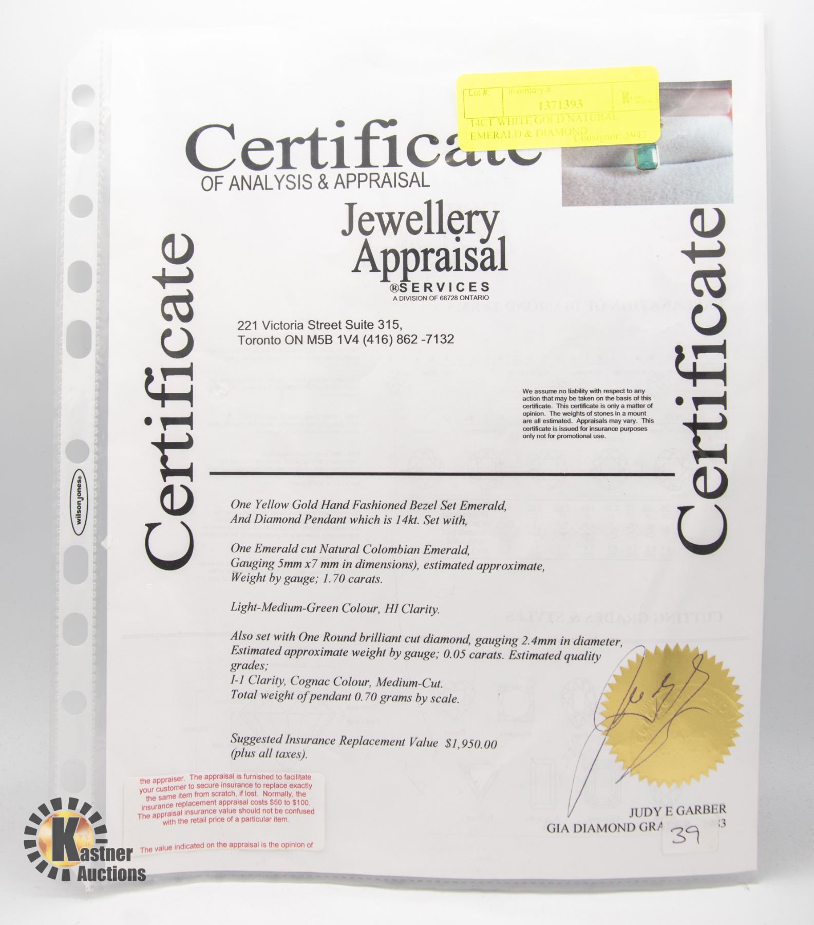 PENDANT WITH COA **ALL ITEMS MUST BE REMOVED BY 5PM SATURDAY, JANUARY 4TH 2025. ALL REMAINING ITEMS WILL BE SUBJECT TO A $6.00 PER DAY STORAGE CHARGE. ANY ITEMS REMAINING AFTER MONDAY, JANUARY 27TH 2025 WILL BE CONSIDERED FORFEITED. NO REFUNDS WILL BE ISSUED FOR FORFEITED ITEMS. TO SCHEDULE A PICK UP APPOINTMENT CLICK HERE