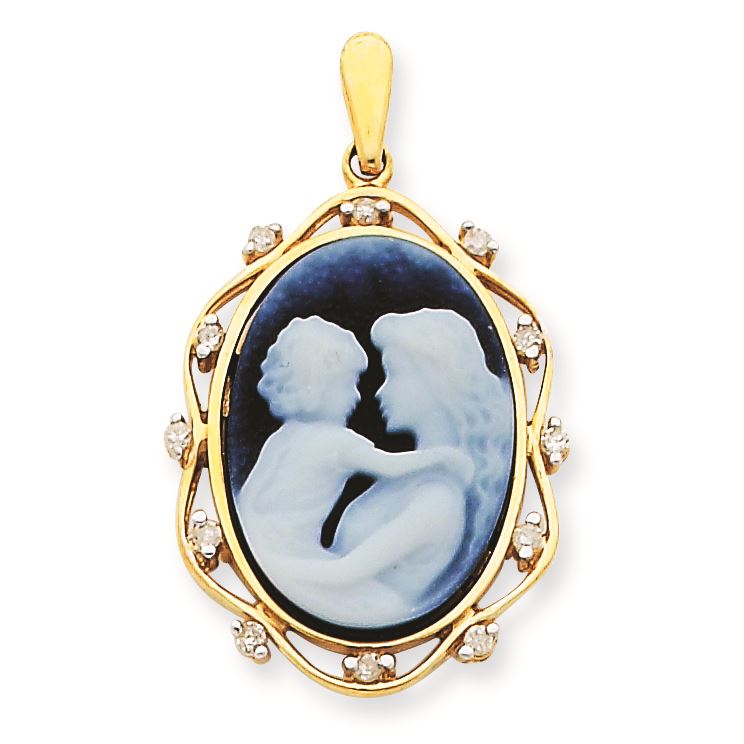 14k .12ct Diamond 13x18mm Mother&Child Agate Cameo with Sentiment Pendant