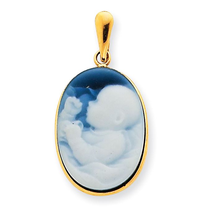 14k 13x18mm Baby Agate Cameo with Sentiment Pendant