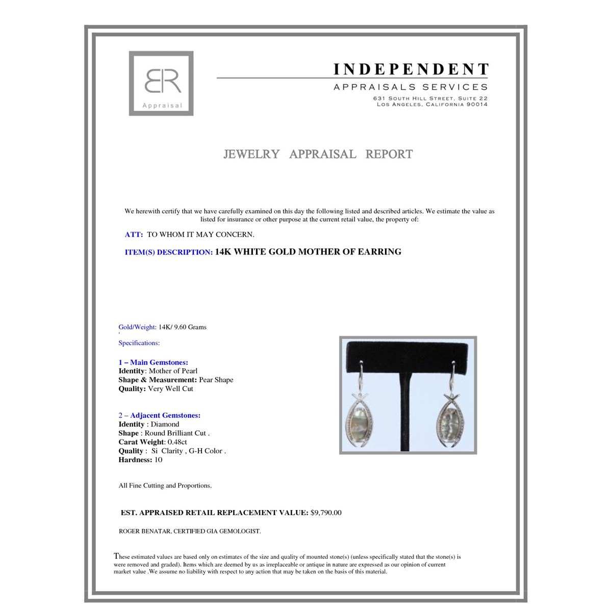 14K 14K White Gold Mother of Earring:9.6g/Diamond:0.48ct/M.of Pearl:2ea