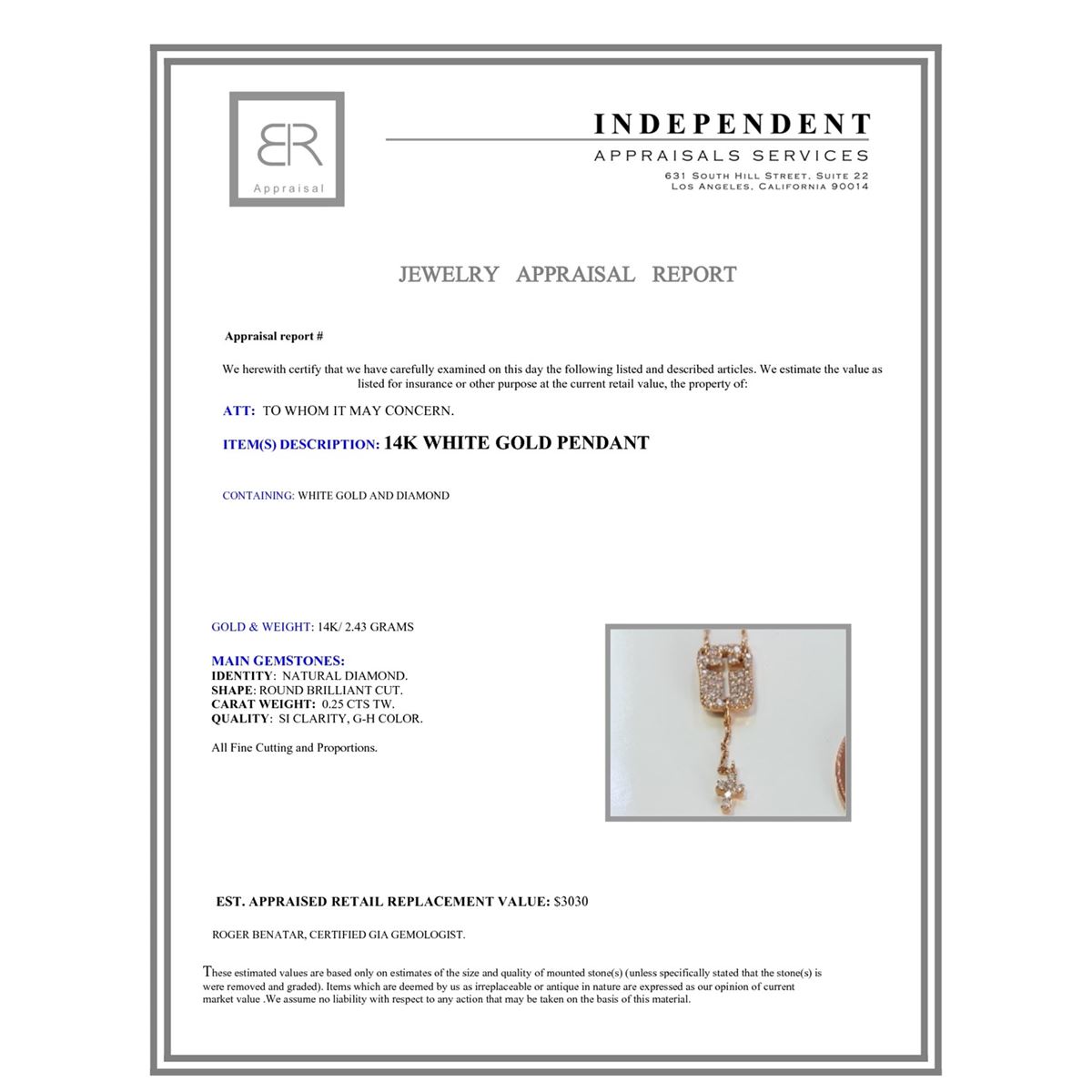 Not all jewelry, watches or loose stones are appraised and the appraisals are provided for bidders only in certain instances at the discretion of the Company. Appraisals, if any should be use to verify gemstone and or metal weights. The appraisals should not be used for valuation of any item. No guarantee, warranty or representation is intended by the Company in any appraisal. All dimensions and weights of such lots are approximate and are consistent with standards and practices in the industry. Condition reports are provided as a service to the prospective buyer. Bidders should take note that such descriptions are not warranties and that watches may need general service, change of battery or further repairs for which the buyer is solely responsible