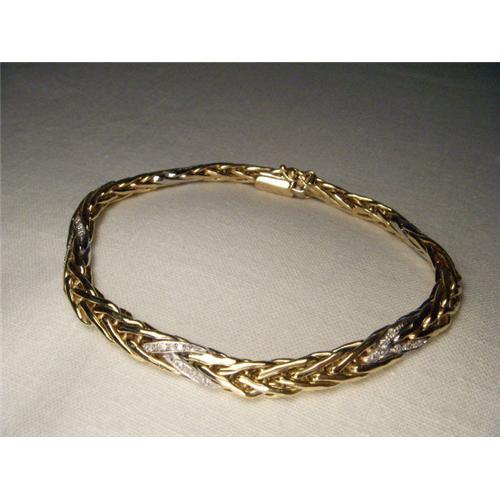 <tr><td>Title:14K 2-Tone Gold Diamond Byzantine Bracelet</td></tr>
