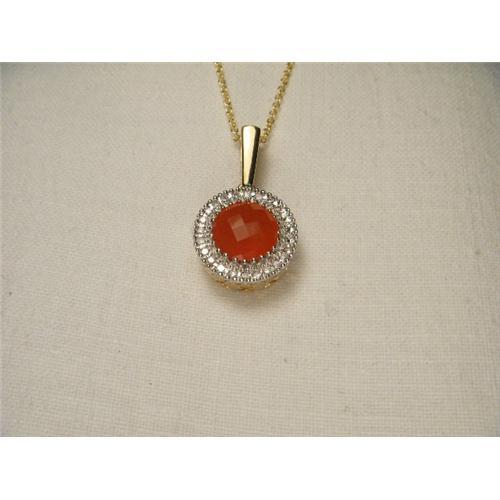 </font></strong>You are looking at an estate 14K 2-tone gold red onyx and diamond filigree pendant / necklace. This beautiful piece features one round natural red onyx measuring 8 mm in diameter, set into a two-tone gold filigree setting. It is surrounded by 24 brilliant round diamonds measuring 1 mm each. The total weight of the diamonds is 0.13 of a carat. The pendant measures 1/2 of an inch in diameter. The necklace measures 18 inches long. It weighs 4 grams. It is in mint condition. </font>