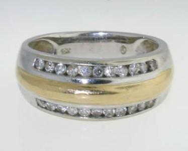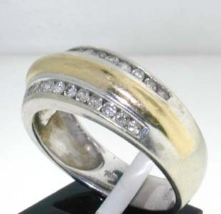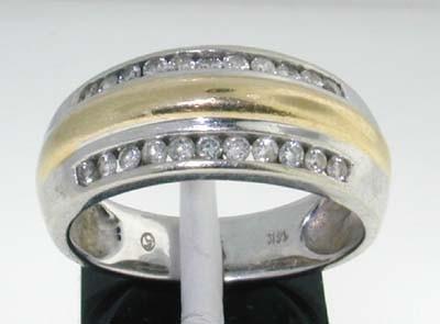 This is a Wonderful 14K 2-toned (White & Yellow) Gold Diamond Ring. The total ring's weight is 7.6 grams. The total weigth of diamond is 0.44 cts approxmiately, I color SI-1 clarity. The size of the ring is 9.75. This is a beautiful ring!!