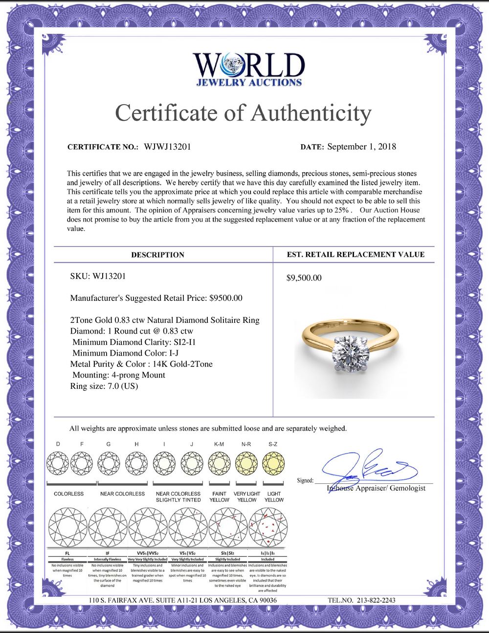 REF-203W4K - SKU: WJ13201 ---- 14K 2Tone Gold 0.83 ctw Natural Diamond Solitaire Ring
