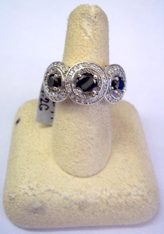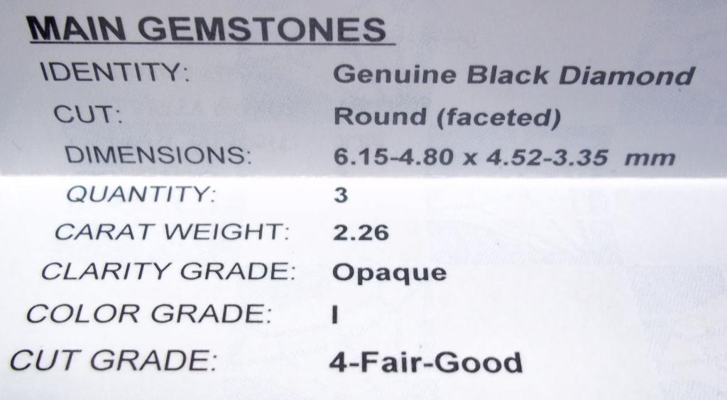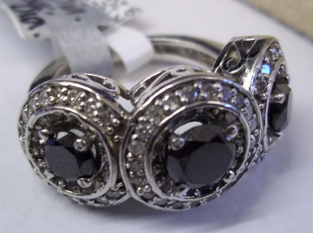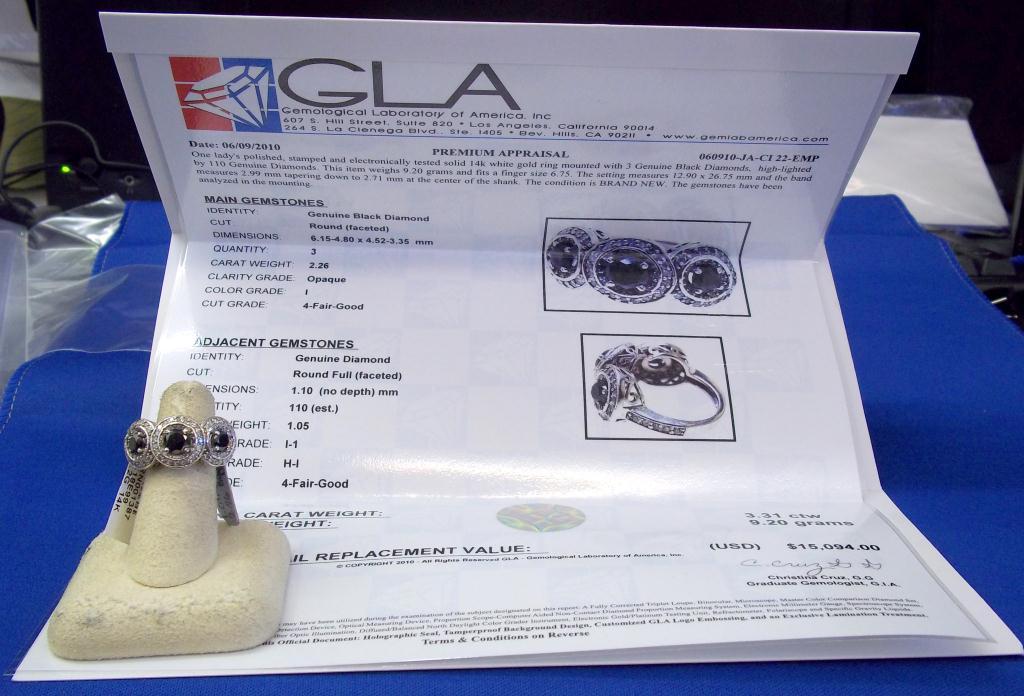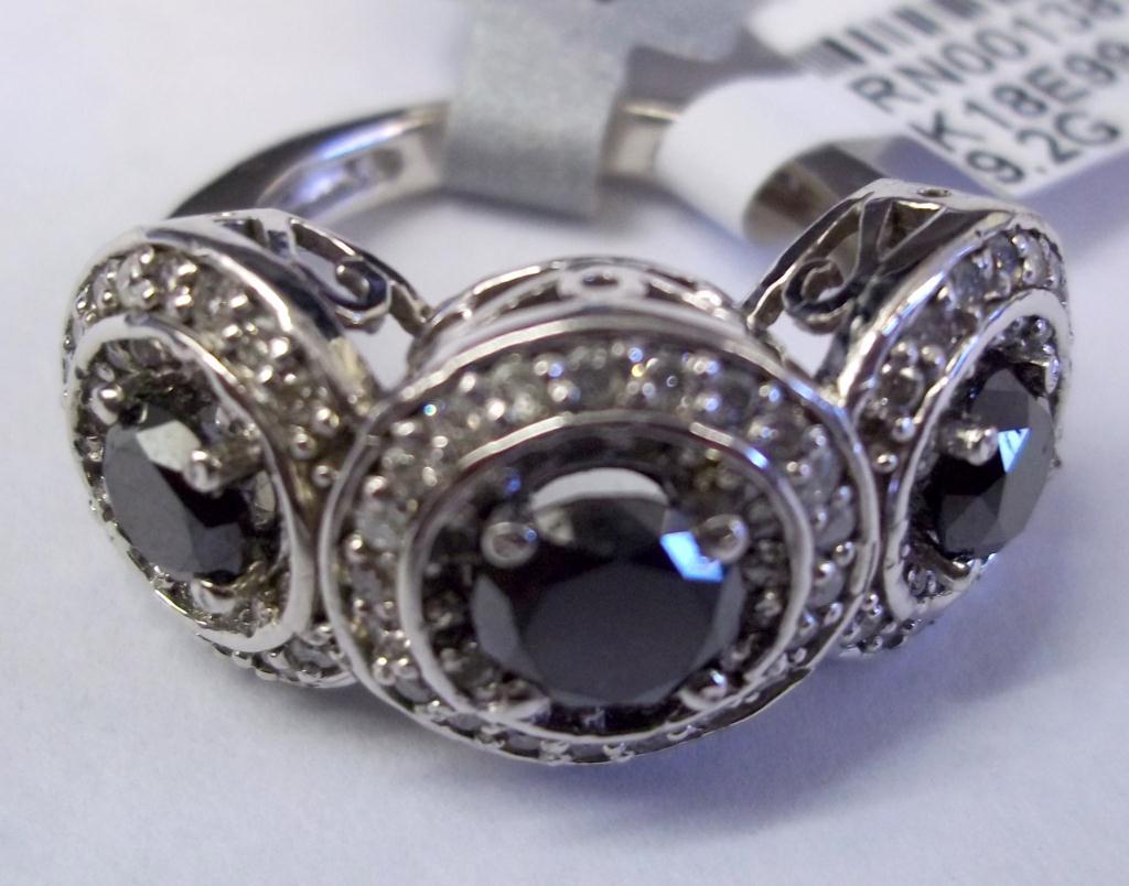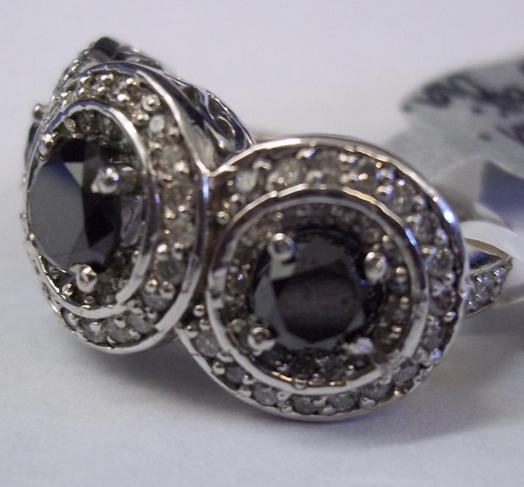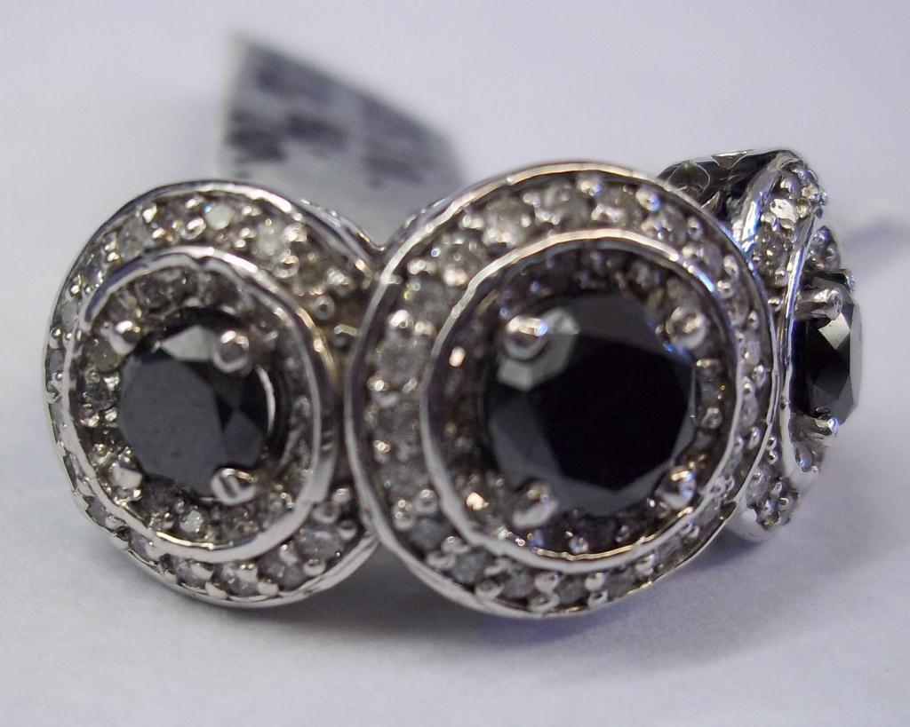 GLA $15,094.00. 14K White Gold, 3 Genuine Black Diamonds, 110 Round I-1 H-1 Round Full Faceted Diamonds 1.05 carat. Total Weight 9.2 grams