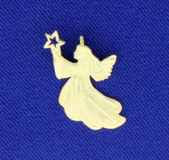 In 14K yellow gold the angle is 1 inch long and appears to be holding a star-great detail! .9g