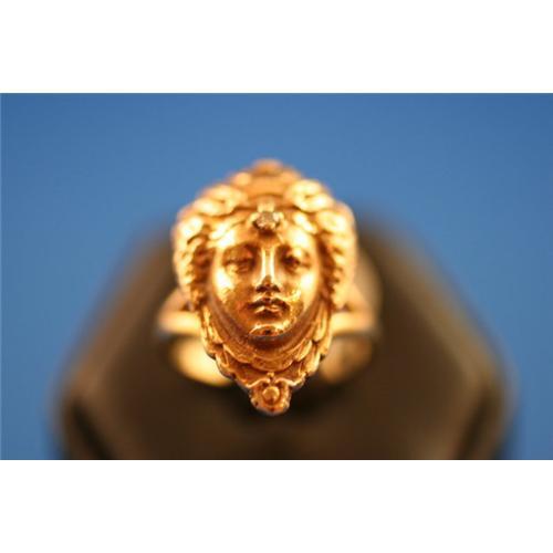 <tr><td>Title:14K Art Nouveau ring- Face with Diamond!</td></tr>