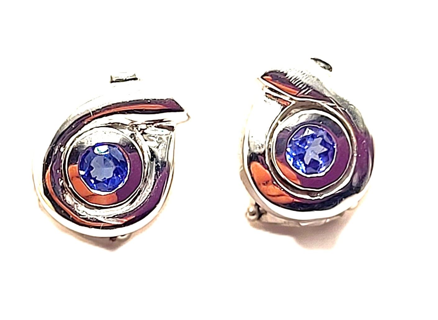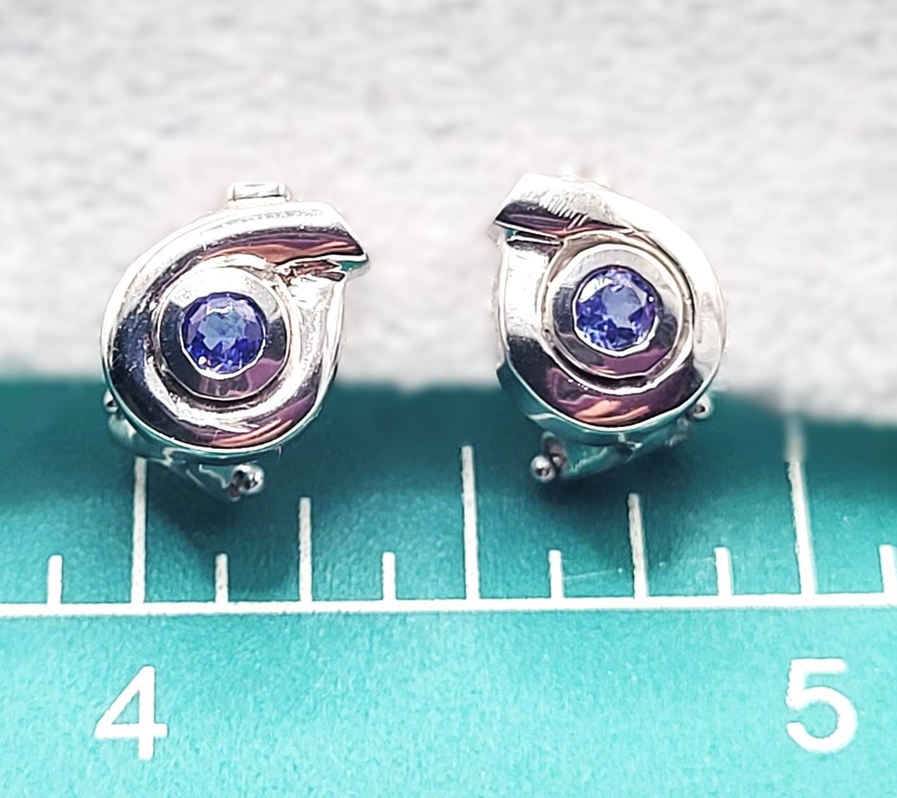 This pair of earrings have & quot;stand-out beauty& quot; on their own, but they also carry a compassionate symbol of awareness with the overlapping ribbon design. They are crafted in 14 karat white gold and feature .30 carats total weight of round, faceted, bezel-set, genuine tanzanites. The earrings are approximately 3/8& quot; long and attach to the earlobes with posts and outstanding Omega backs. So, whether you are wearing these earrings for their natural beauty, or to support Alzheimer’s Disorder Awareness, you will certainly love them. They are also eligible for appraisal at a discounted rate, from an independent appraiser (with qualifying credentials from GIA) with no affiliation to Bidfair Fine Jewelry. Please contact Bidfair Fine Jewelry for more information on appraisals. Admin: G11241/27ltt