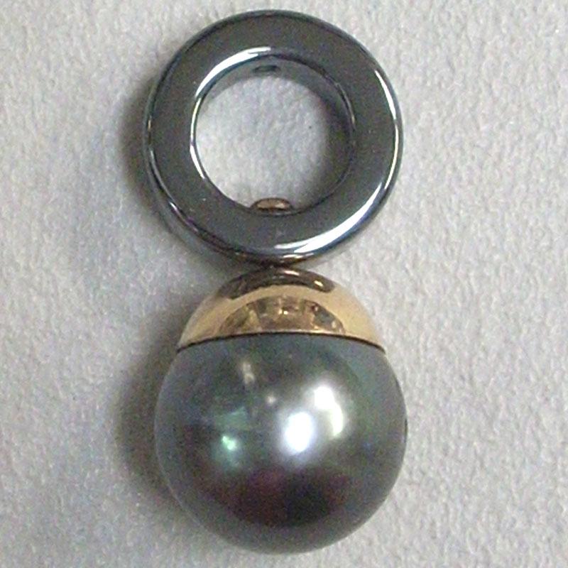 14K BLACK TAHITIAN PEARL AND HEMATITE UNISEX PENDANT 26x12 MM