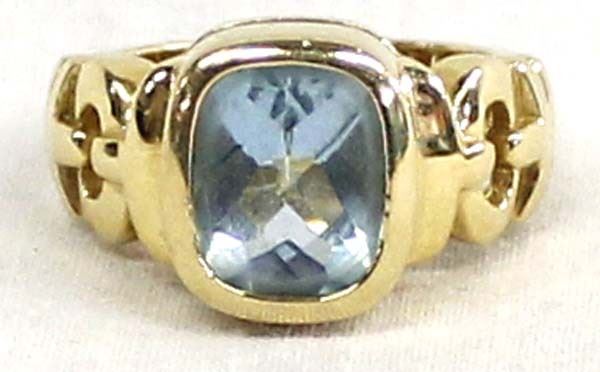 14K Blue Topaz Ring, Size 5.5, measures .5''W, stamped 14K