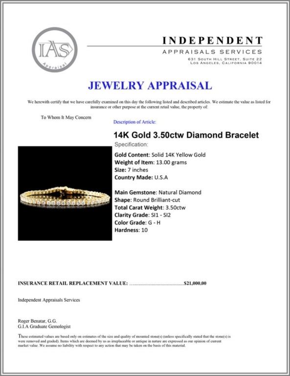 Regarding Appraised Jewelry and Loose Stones - Auctionfarm sends them out to a third party for Retail Replacement Value Appraisals, which are the most common. These types of evaluations are written for insurance needs. This would be the cost to replace the jewelry with an item of equal quality and kind, considered to be the current market price or the replacement value. This type of appraisal is done to protect you in the event of damage or loss of a valuable item. Our appraisals are conducted by independent 3rd Party appraisal firms that utilizes Certified GIA Gemologist. Appraisals should be used for verification of gemstone and/or metal weight, size, and grade only, not actual value. Appraisal value should be considered for insurance purposes only, not actual value, as price varies greatly from retail locations thru out the world. Items should not be purchased with the expectation to resell for appraisal price, or for profit.