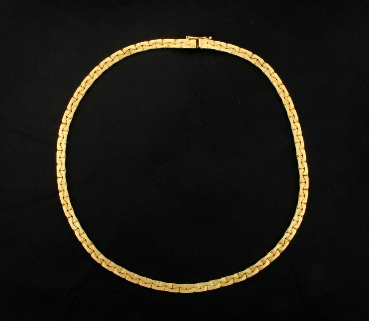 In 14K yellow gold this chain has a satin finish and is 16 inches long and 4.5mm wide. 40.8g