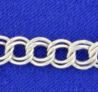 It is 14K white gold and is 8 inches long and 6mm wide. 4.6g