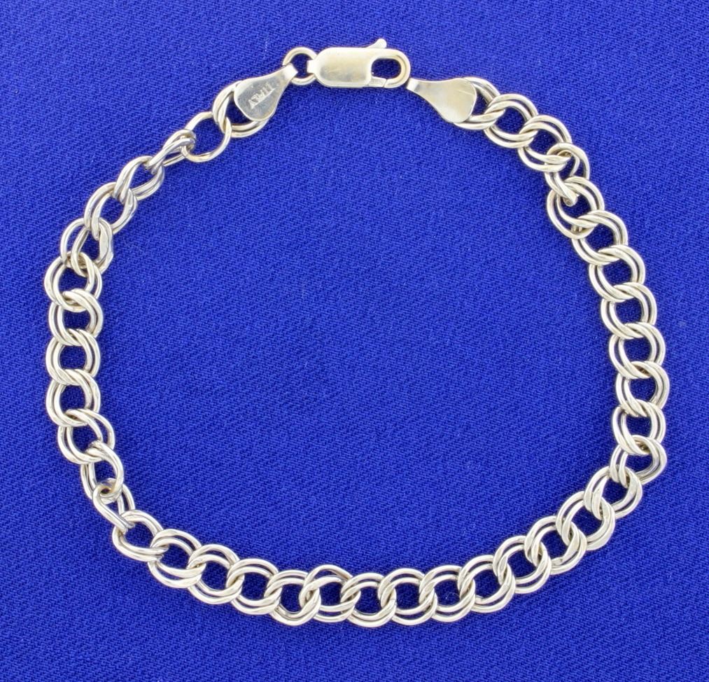 It is 14K white gold and is 8 inches long and 6mm wide. 4.6g