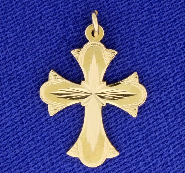 In 14K yellow gold, the pendant is 1 1/2 inches long with bale and is beautifully detailed! 4.7g
