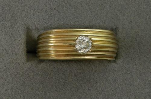 14K YELLOW GOLD .25CT ROUND BRILLIANT CUT DIAMOND FASHION BAND. 7.0 GRAMS.