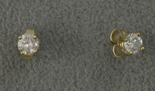 14 K YELLOW GOLD .50 CT TOTAL WEIGHT ROUND BRILLIANT CUT DIAMOND STUD EARRINGS J-K COLOR, I1 (MOSTLY EYE-CLEAN).