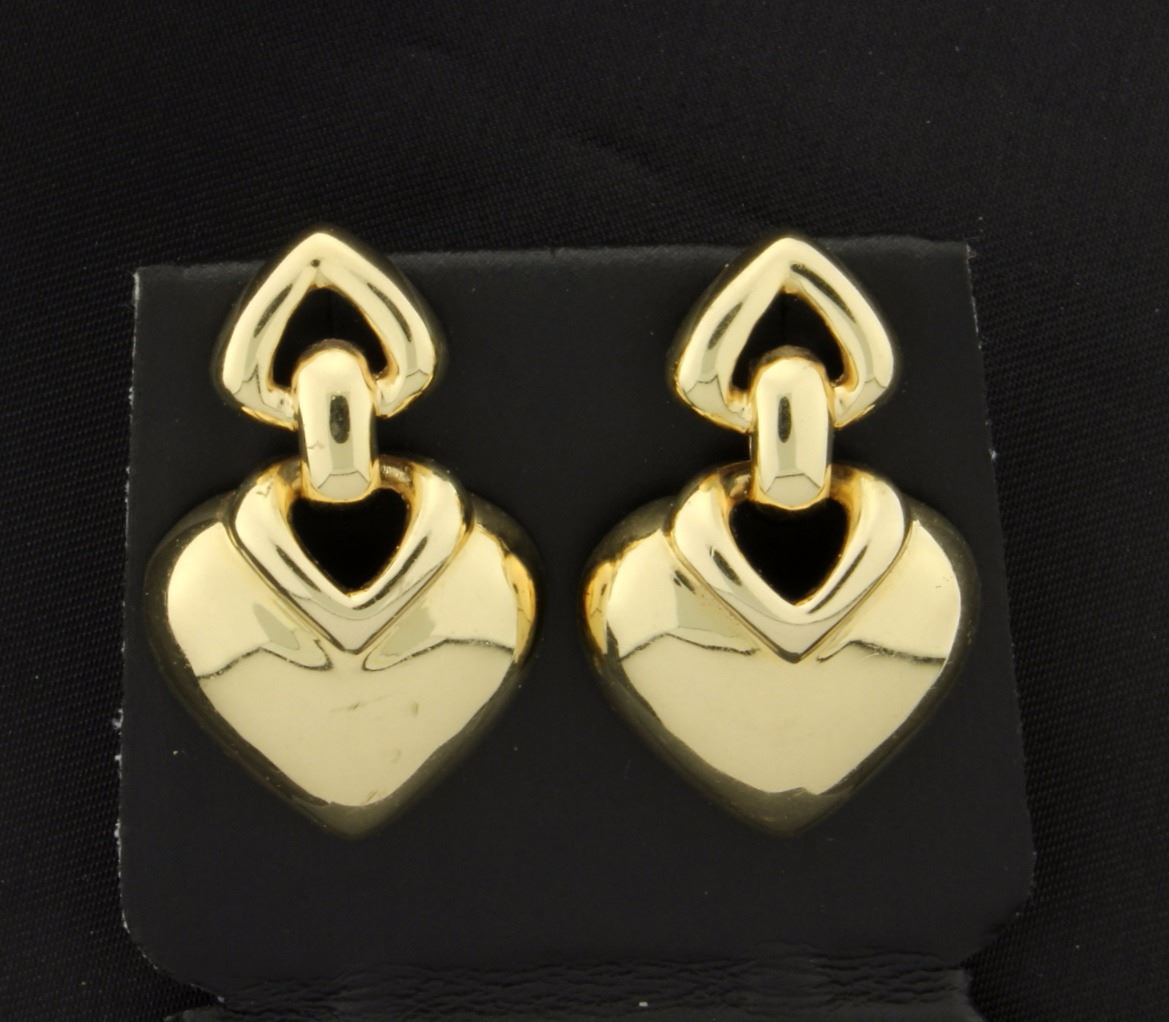 14K yellow gold with friction backs they are 1 1/4 inches long. 9.7g
