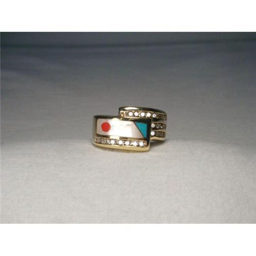 <tr><td><font size="2" face="Arial, Helvetica, sans-serif"><strong><font color="#000033">Title:</font></strong>14K Diamond MOP Turquoise Coral Mosaic Band</font></td></tr>