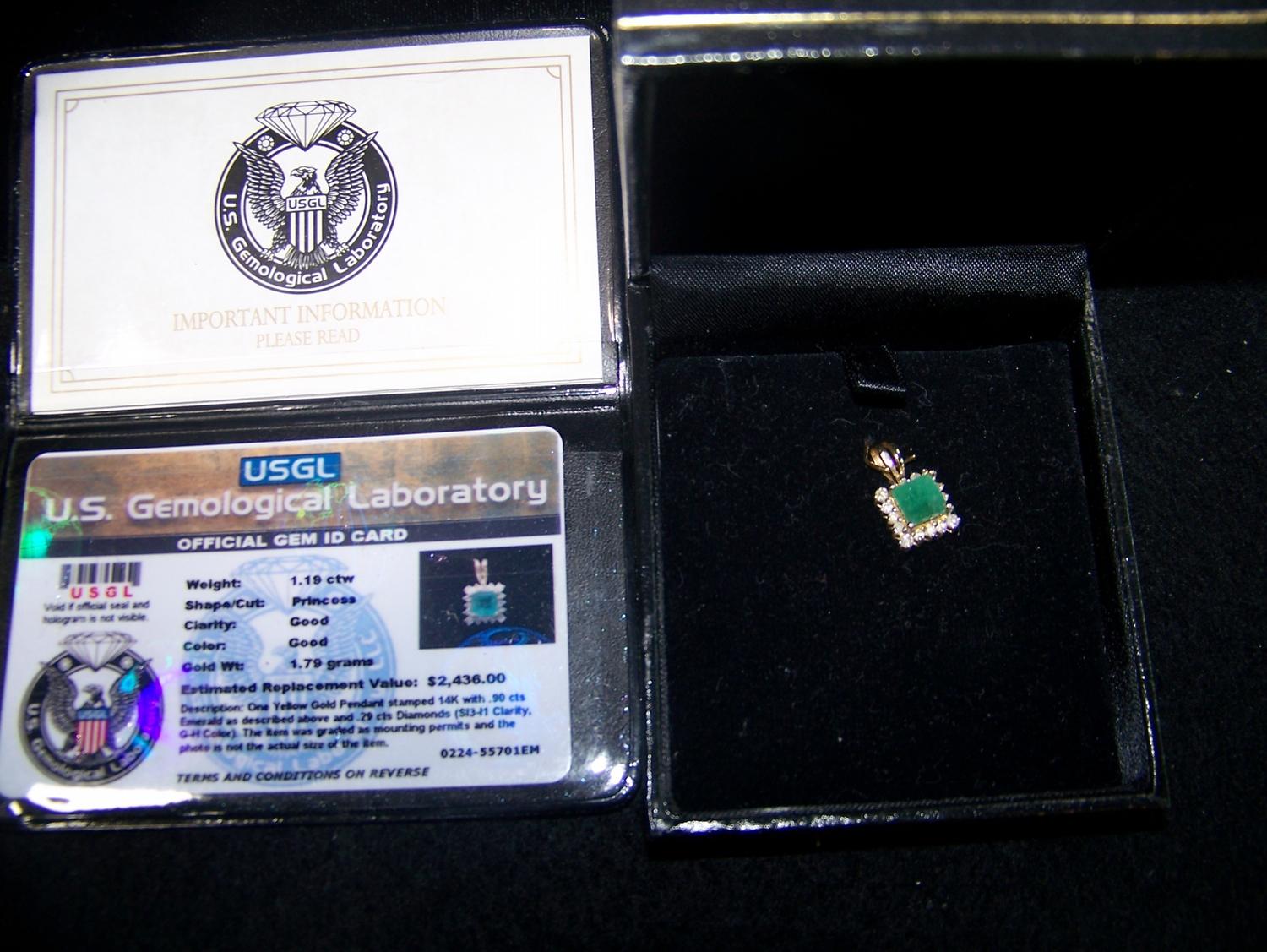 U.S GEMOLOGICAL LABORATORY OFFICAL GEM ID CARD READS AS FOLLOWS: WEIGHT:1.19 CTW