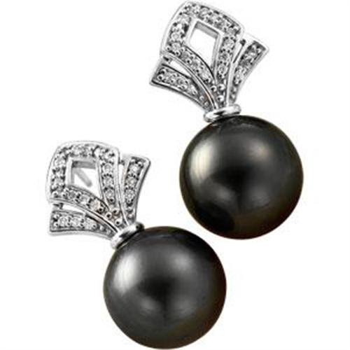 <B>14k White Gold TAHITIAN Black Pearl and Diamond Earrings. These lovely Earrings feature beautiful Tahitian Black Pearls and 42 round faceted Diamonds= 1/5 Carat Total Weight. </B>