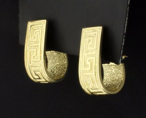 They are 14K yellow gold with a really cool design. They are in great condition, and are 3/4 inch long. 7.5g