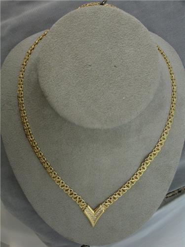 18" 14K YELLOW GOLD ITALIAN FANCY CHAIN NECKLACE WITH CENTER V SECTION SET WITH 13 ROUND BRILLIANT DIAMONDS WEIGHING AN ESTIMATED 2.5 CT TOTAL WEIGHT, 34.3 GMS