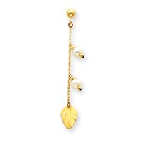14k FW Cultured Pearl and Leaf Dangle Earrings