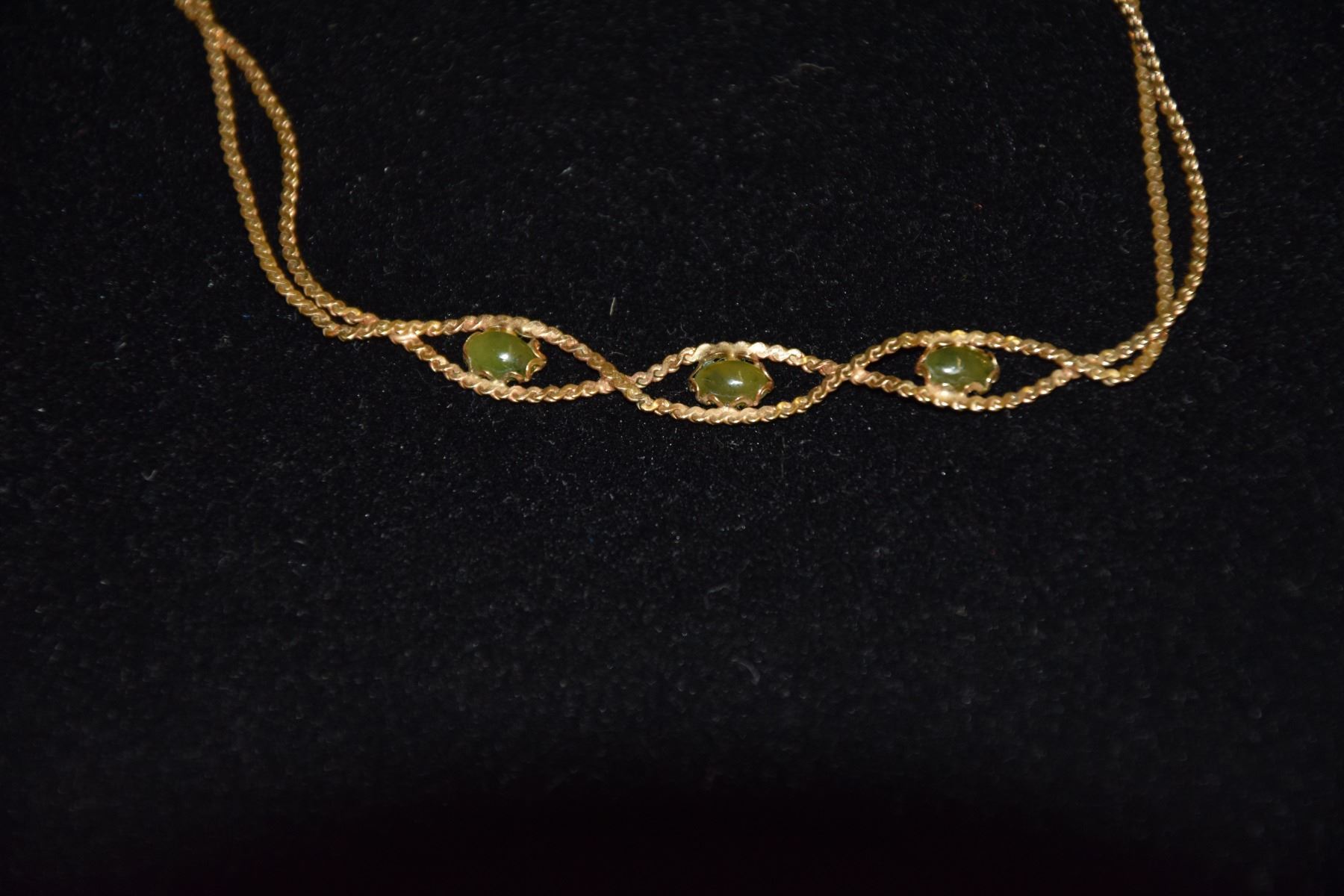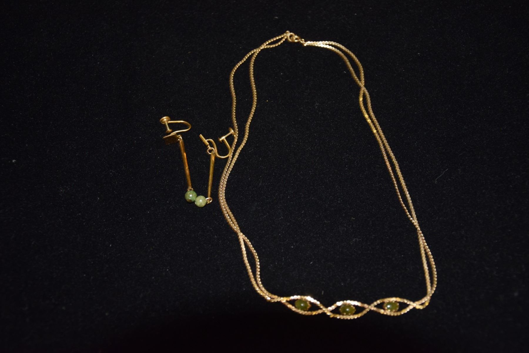 14K GF JADE BEAD EARRINGS & GF JADE NECKLACE (2 PCS)