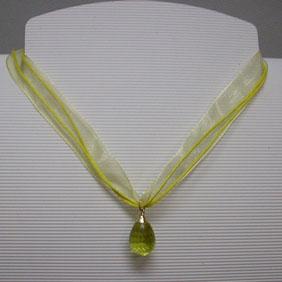 14K GOLD 13.60 CTS LEMON CITRINE (GREEN GOLD) PENDANT 23x10 MM WITH RIBBON W/CLASP