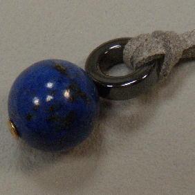 14K GOLD 15 MM LAPIS LAZULI AND HEMATITE PENDANT