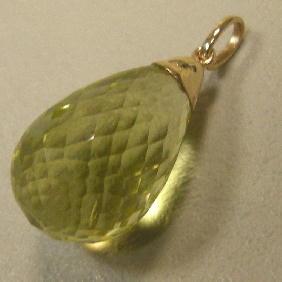 14K YELLOW GOLD LEMON CITRINE PENDANT. IT WEIGHTS 16.40 CTS AND MEASURE 23x10 MM.
