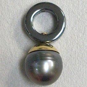 14K GOLD 24x10 MM BLACK TAHITIAN PEARL AND HEMATITE UNISEX PENDANT