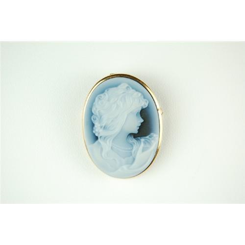 This Vintage 14k Yellow Gold Pin can also be worn as a Pendant. It features an AGATE CAMEO of a beautiful young in profile looking to her left. She is framed in 14k Yellow Gold and this piece measures 1 1/4" x 1" in size.