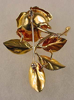 14K GOLD AND DIAMOND LADIES FIGURAL ROSE BROOCH - Beautiful Rose Brooch w/ a Diamond in the center of the Rose. Approx. 2.25" long. Total Weight 16.2 grams