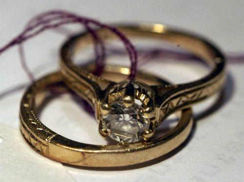 14K GOLD AND DIAMOND WEDDING SET, approx. .25 ct diamond, PACKING AND SHIPPING (excluding insurance) $20,