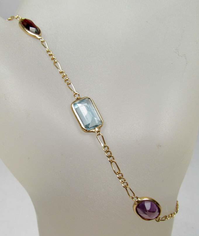 14K GOLD AND GEMSTONE LADIES BRACELET - 1.9 GRAMS - APPROX. 7" LONG