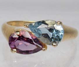 14K GOLD AND GEMSTONE LADIES RING - 3.2 GRAMS