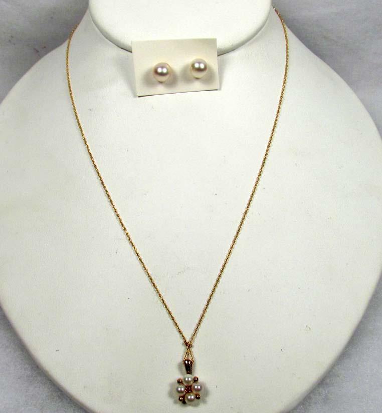 14K GOLD AND PEARL NECKLACE AND EARRING SET - 2.90 GRAMS
