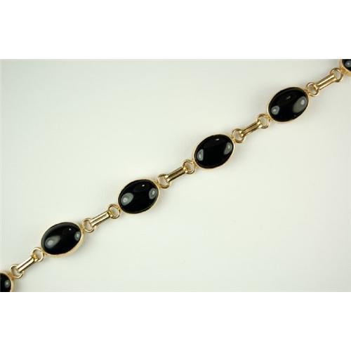 This VINTAGE 14k GOLD BRACELET is Circa 1990 and it is in Excellent condition. The Bracelet features 6 beautiful Oval BLACK ONYX. The Total Weight of the BLACK ONYX = 24 CARATS! The Bracelet is 7" in length.