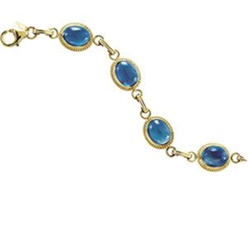 Very lovely 14k Yellow Gold Bracelet featuring 7 Oval London Blue Topaz. The Blue Topaz Total Weight = 21 CARATS!! Each London Blue Topaz is surrounded by beautiful 14k Goldwork. There is a 'lobster claw' clasp for security as well as comfort. This bracelet is 7 inches in length and it is in pristine condition.