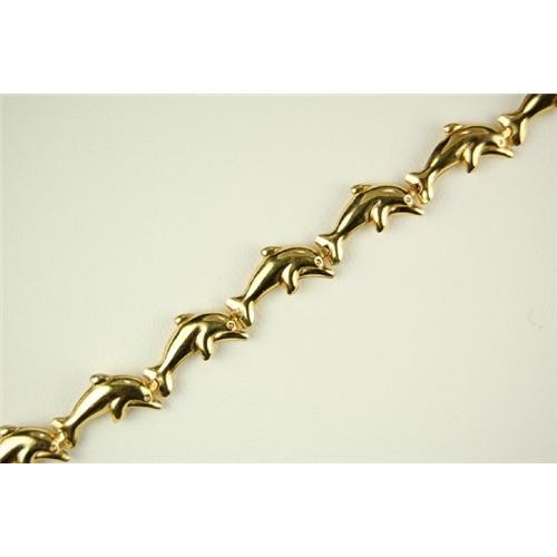 This 14k Yellow Gold Bracelet features DOLPHIN shaped links all the way around. The Bracelet is 7 inches in length and it is in Excellent condition.