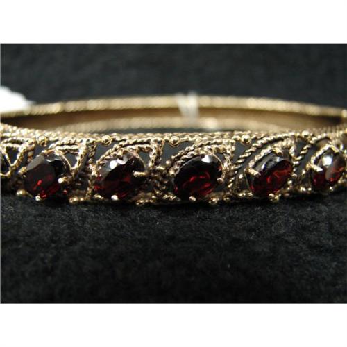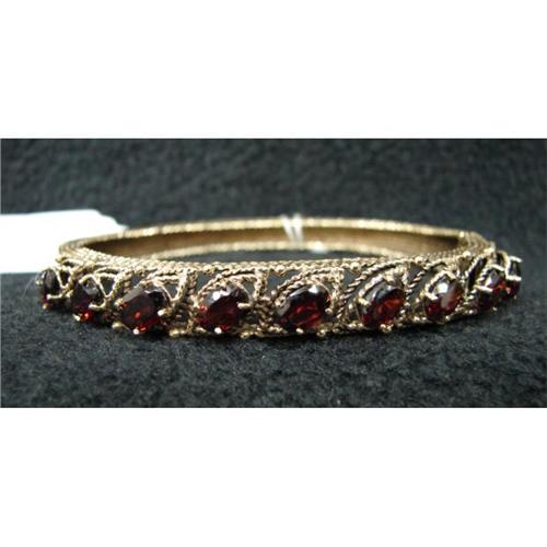 14K GOLD BRACELET WITH GARNETS. 9 garnets set across the top.