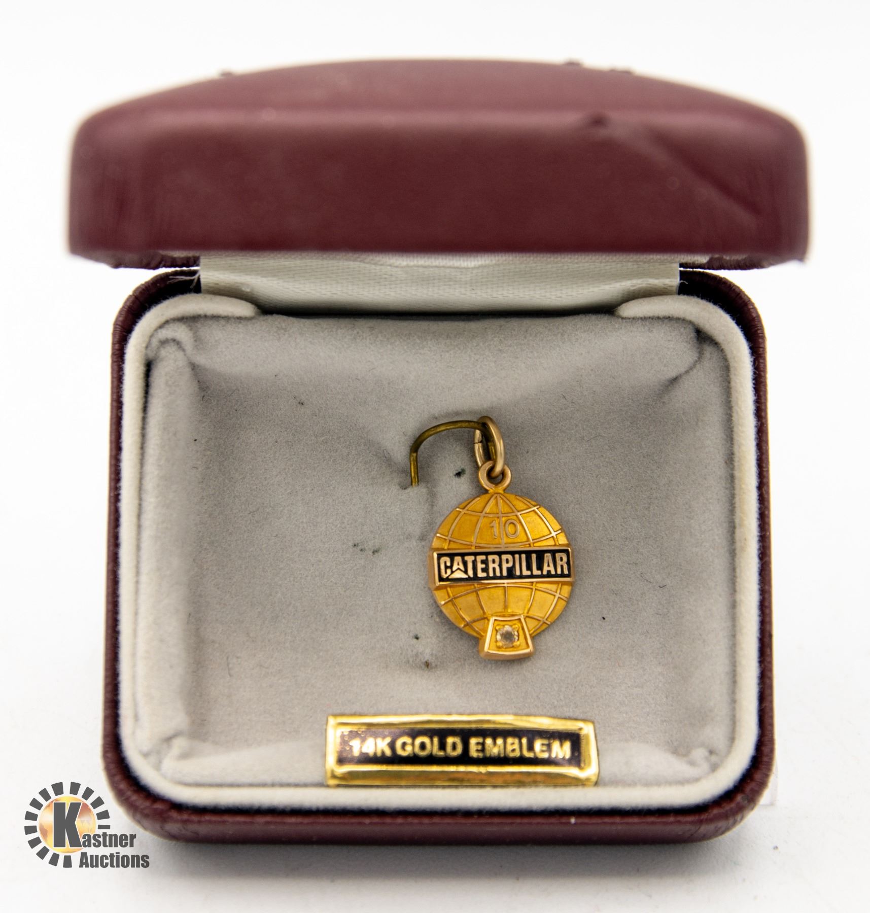14K GOLD CATERPILLAR AWARD PIN WITH GEMSTONES